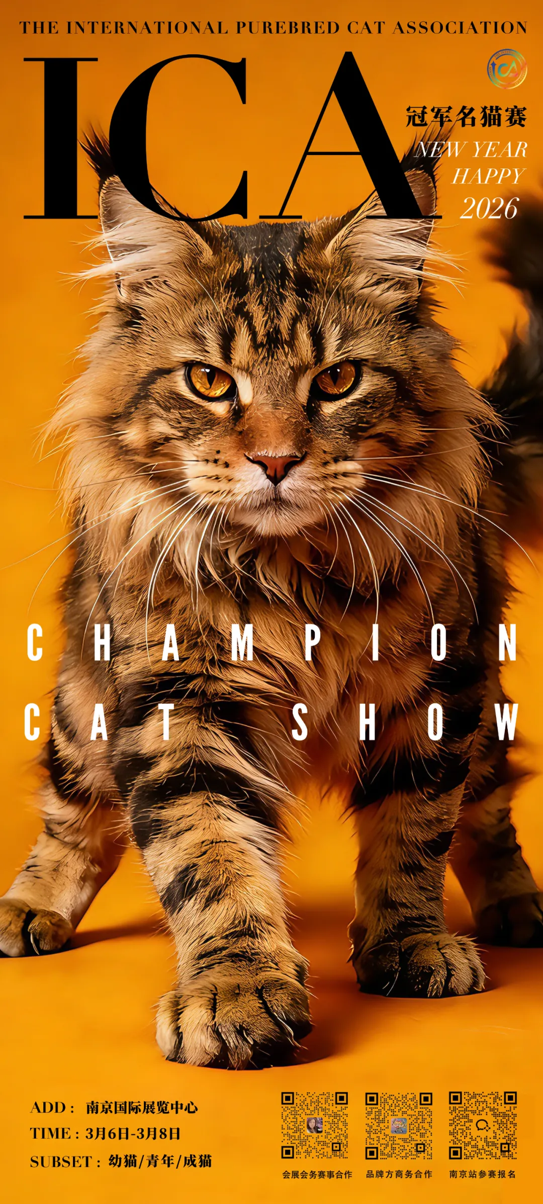 2026 ICA 冠军名猫赛・南京站|猫界顶流集结,开启新春吸猫盛宴!