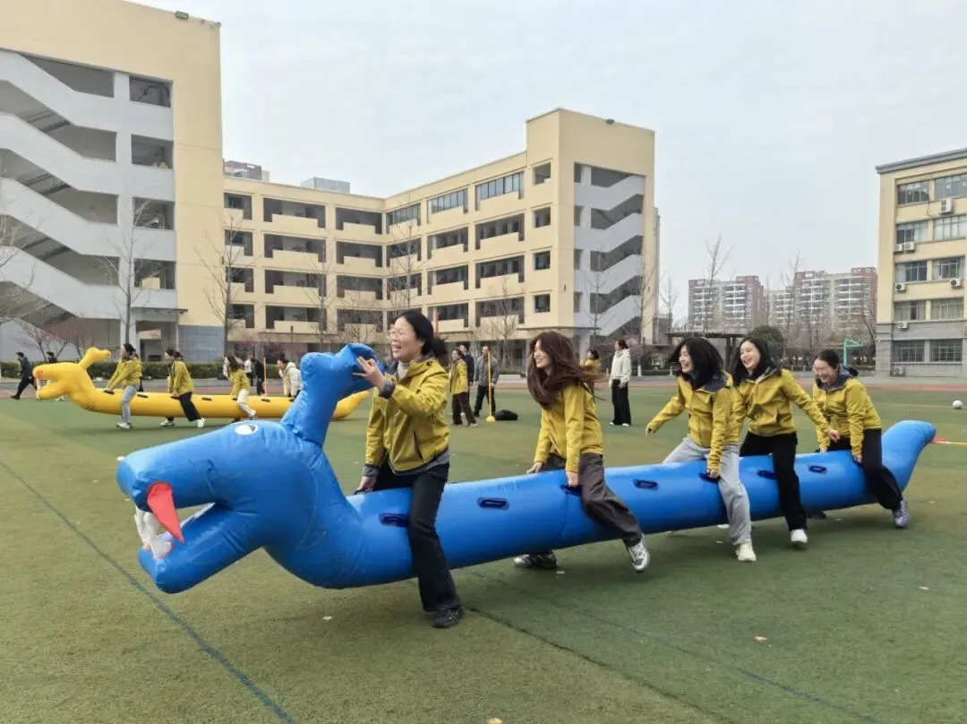 为体现人文关怀,本次活动特别在篮球场设立了“温馨专区” ,主题为“马到成功·趣味套圈”。该专区专为不适宜参加剧烈运动的教职工设置,让大家在轻松愉快的氛围中也能参与游戏,收获快乐与奖品。