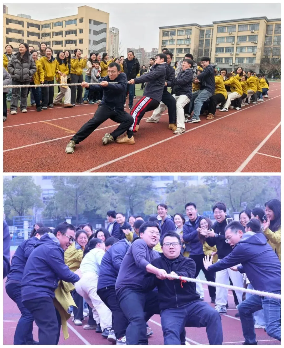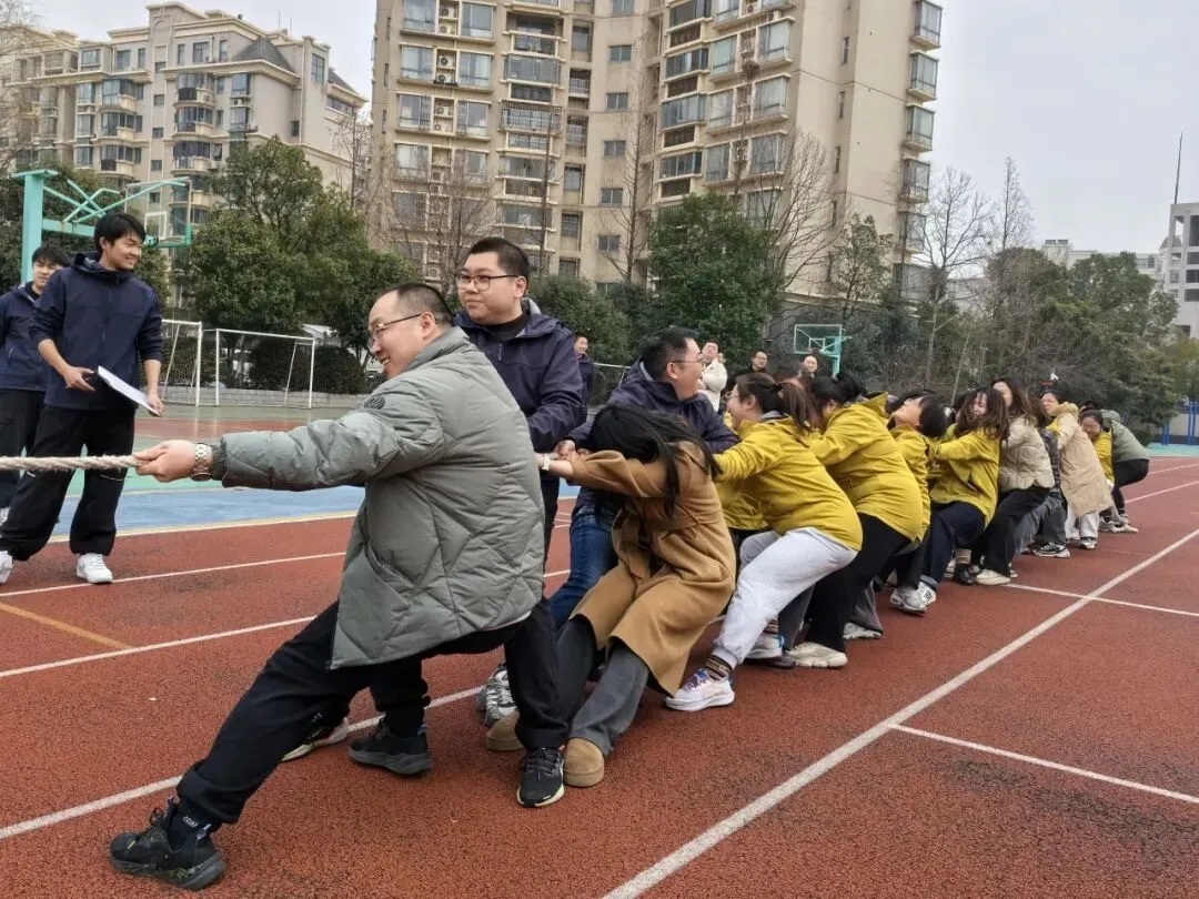 压轴大戏“万马奔腾·拔河争霸赛”将活动推向最高潮。各年级组派出最强阵容,在震耳欲聋的呐喊助威声中展开力量与意志的巅峰对决。绳索中点的红线左右拉锯,双方队员寸土不让,充分展现了学校教职工坚韧不拔、众志成城的拼搏精神。初三年级5位属马的教师也在赛后送上了他们对学校与同事的深情祝福。最终,特等奖由黄书记和获胜队的队长抽取并颁出,5位“超级幸运儿”的诞生为竞赛环节画上圆满句号。