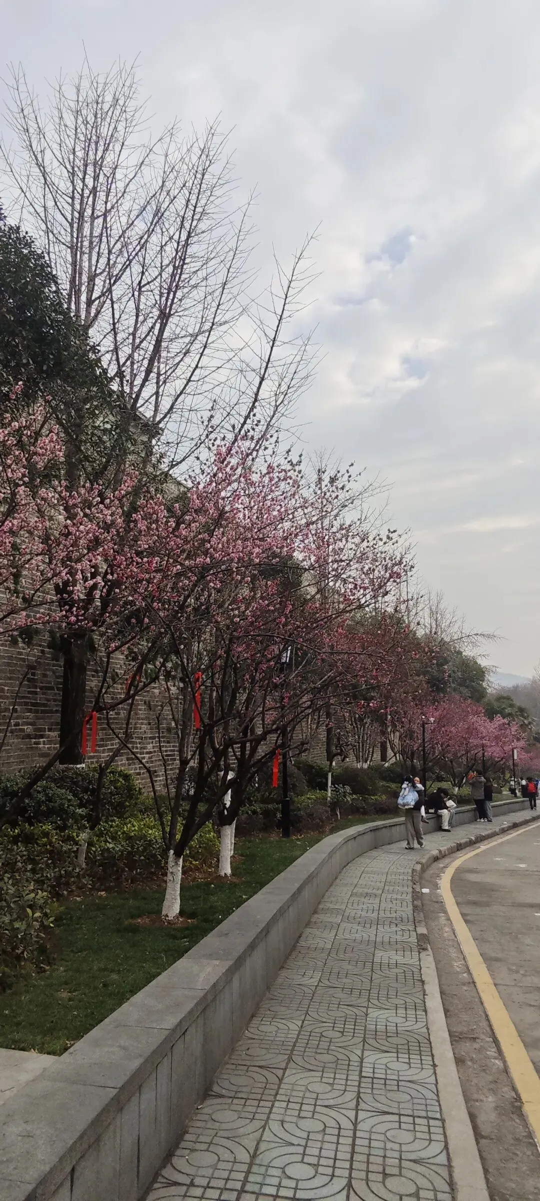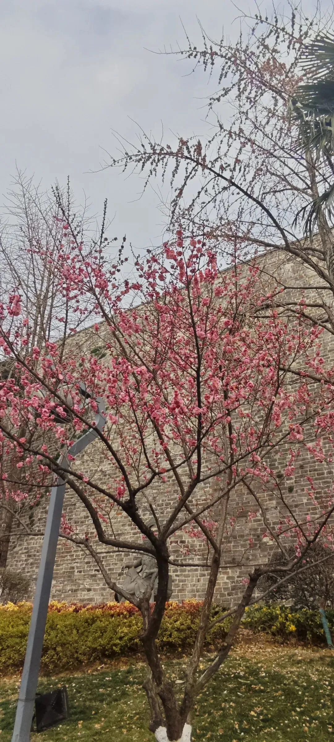 步行去鸡鸣寺,路边红梅盛放,清香扑鼻,背景是高大的古城墙,绯红与青灰,实在是相得益彰,典雅之美令人陶醉。