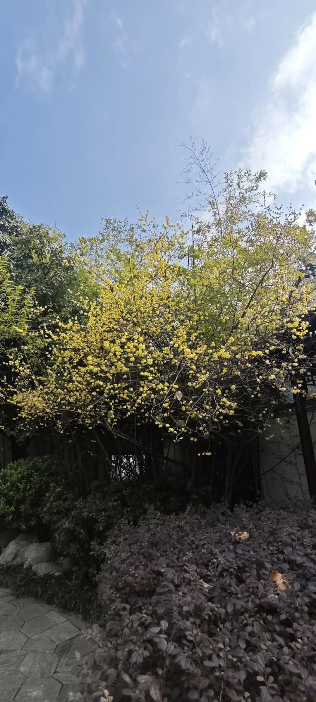 江宁织造博物馆的一株蜡梅开到了极致,借用杜工部的诗就是“千朵万朵压枝低”。我从未见过开到如此阵仗的蜡梅,一时竟然有落泪的冲动。蜡梅树边是一丛绿竹,金黄的花朵,碧绿的竹叶,清新之美惹人怜爱。当年大观园的少男少女们若是见到这树蜡梅,立马成立个“蜡梅诗社”也未可知。