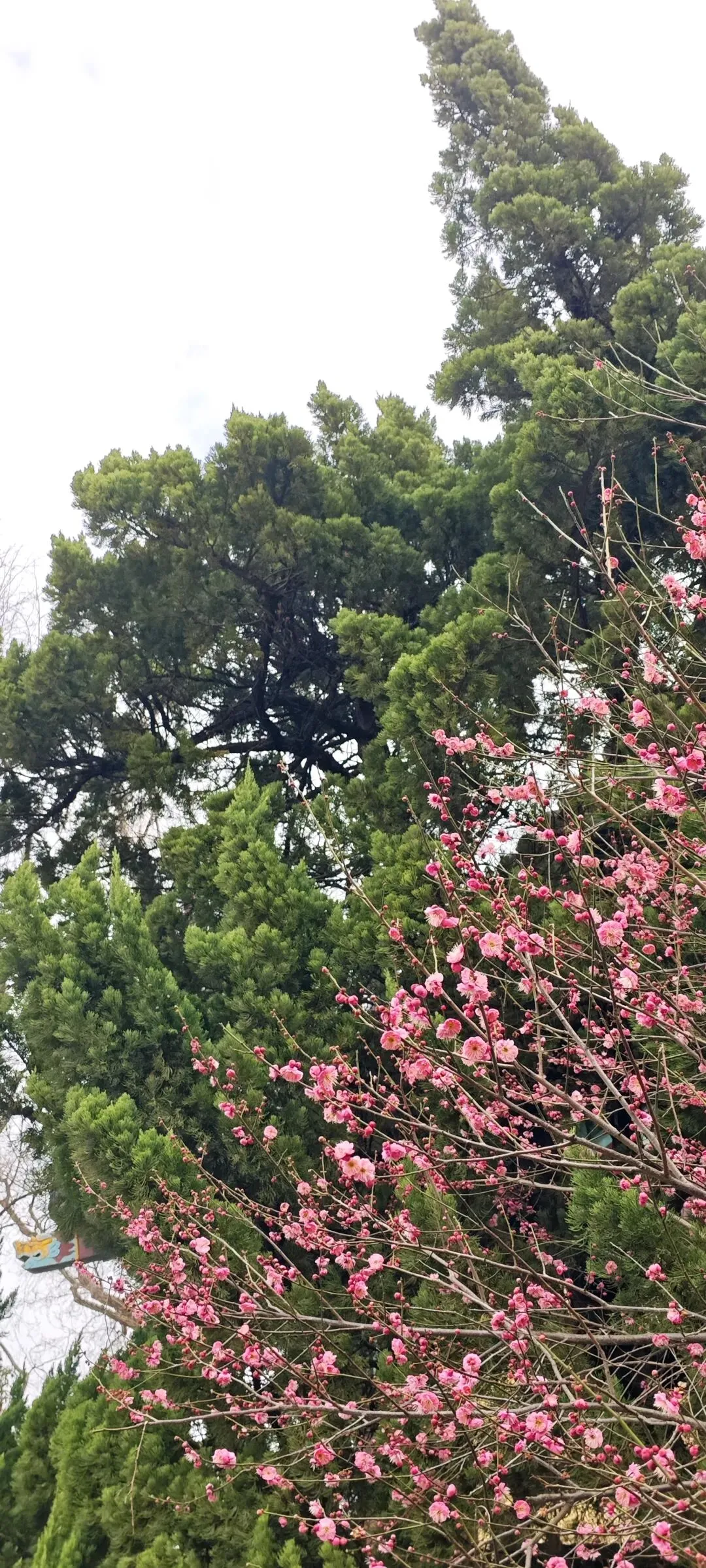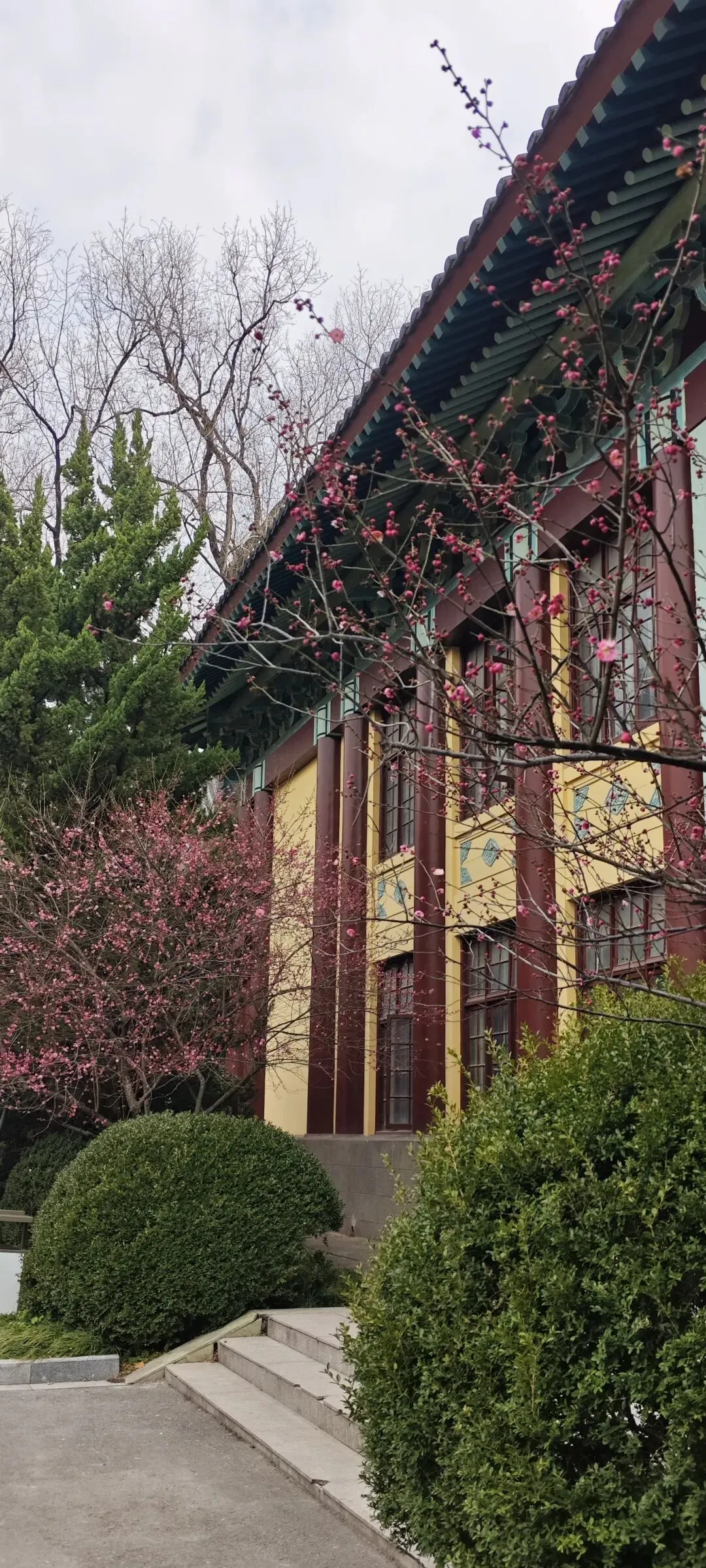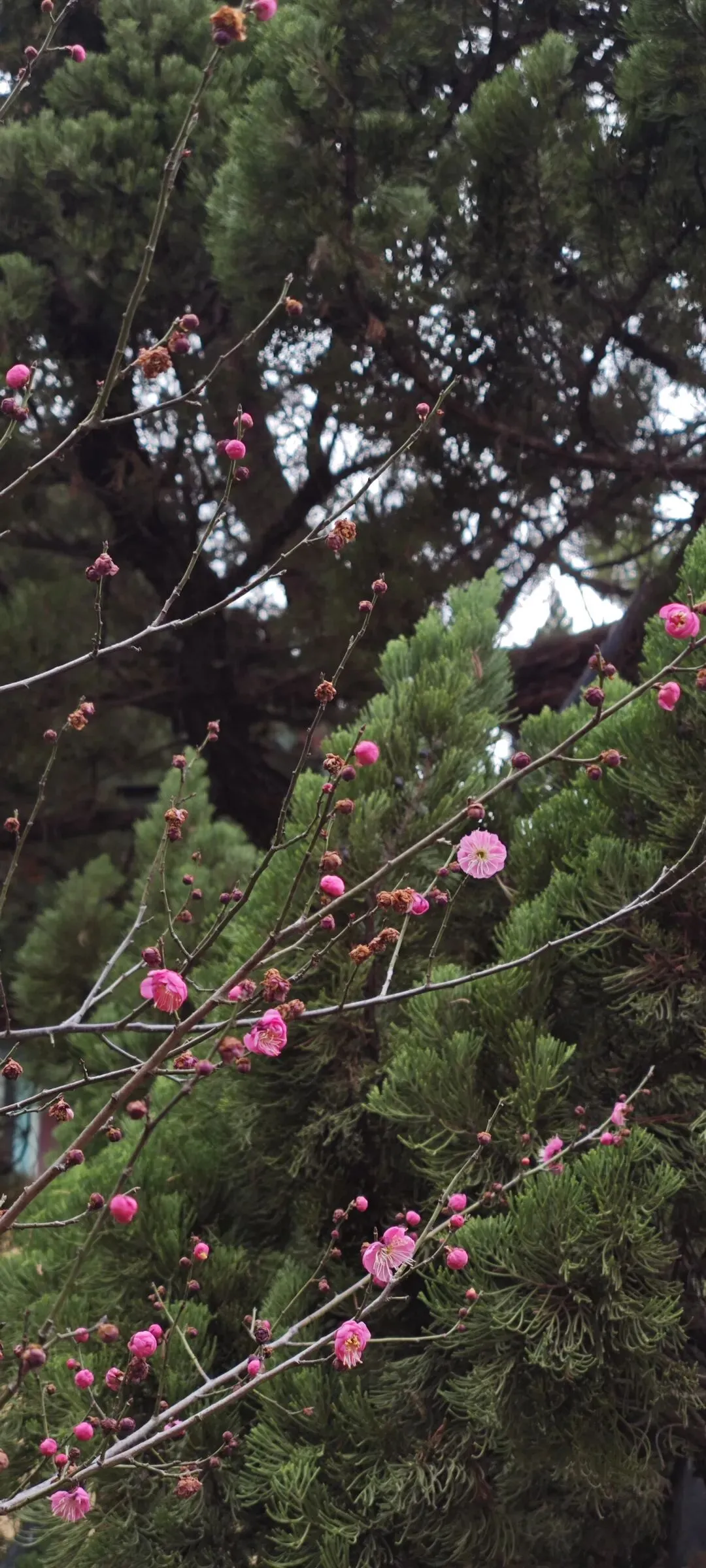 在亚洲最美校园南京师范大学,一路徜徉在民国建筑间,一路欣赏着红梅白梅蜡梅,一路想着,在这样优美的环境中工作学习,人会不会变得更好呢?大概会吧。国际文化教育学院门前,第一次领略到红梅与青松交相辉映的美,怪不得花艺师最喜欢用这两种花材做新年插花呢。黛瓦红墙处,梅的清奇秀雅,松的浩然苍翠,高洁之美引人遐思。
