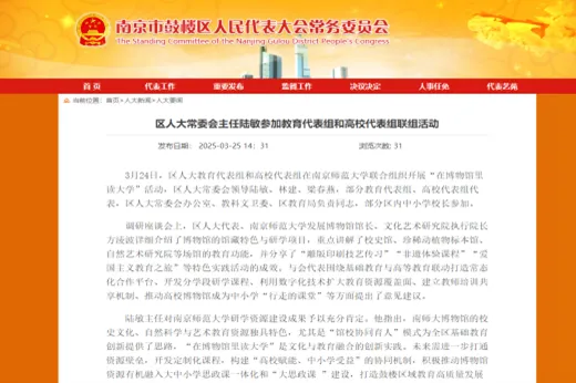 此外,南京市鼓楼区人民政府官网也报道了区人大代表组在南京师范大学开展“在博物馆里读大学”联组调研活动。与会代表们高度评价南师大博物馆的资源特色,并围绕“馆校协同育人”机制展开了深入交流,共同探讨将其打造成为区域中小学优质“行走课堂”的实施路径。