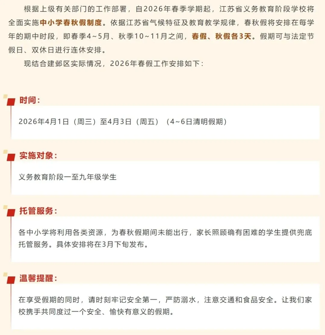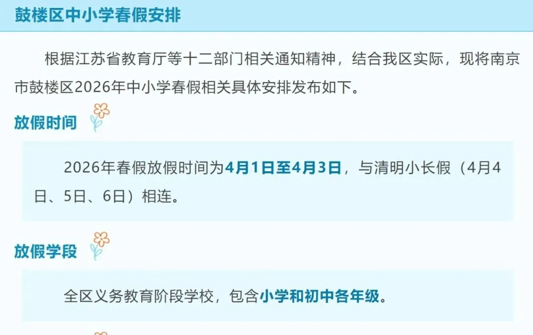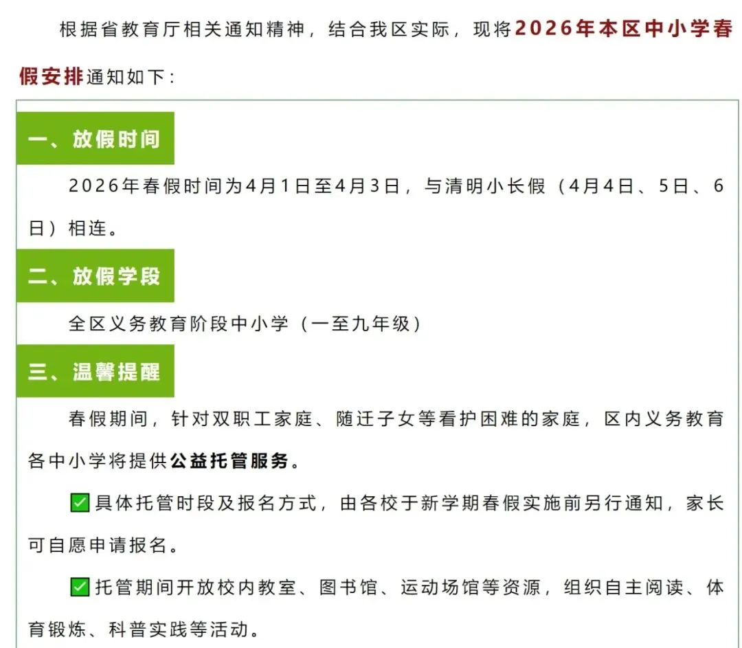 2026年春假时间为4月1日至4月3日