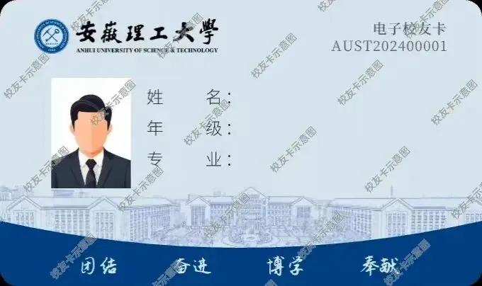 长按识别或扫描下方二维码,进入安徽理工大学校友服务大厅,注册完成后,点击首页【校友卡】,领取你的专属的电子校友卡啦~~尚未毕业的在校生不用着急申领啊,等毕业了再申领。校友系统里暂无在校生的比对信息。我们等你毕业哦!