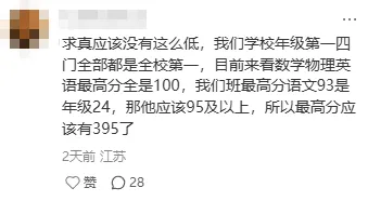 但也有求真的学生表示总分最高分可能达395分: