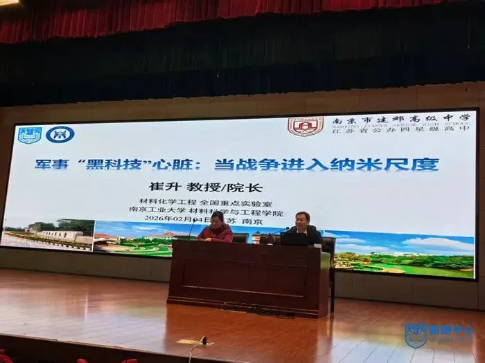 为开启高校-高中协同育人新篇,深入解读新一轮科技革命、产业变革以及我校相关领域前沿科技成果,2月4日下午,学校“学科前沿科普报告”专家团教授、材料科学与工程学院院长崔升一行前往南京市建邺高级中学,为高一学子作“当战争进入纳米尺度”科普报告。生物与制药工程学院党委副书记徐元龙、材料学院仲亚副教授等参加活动。