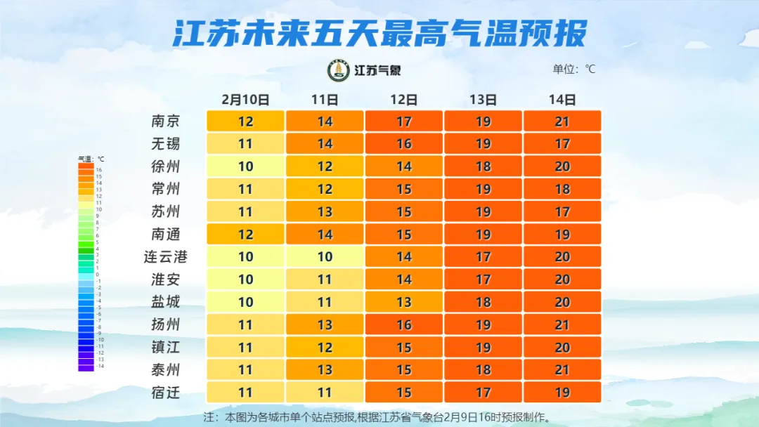春运出行方面,江苏全省明起将放晴,需注意10日清晨苏北部分地区有薄冰,途经高速桥梁请防范暗冰。