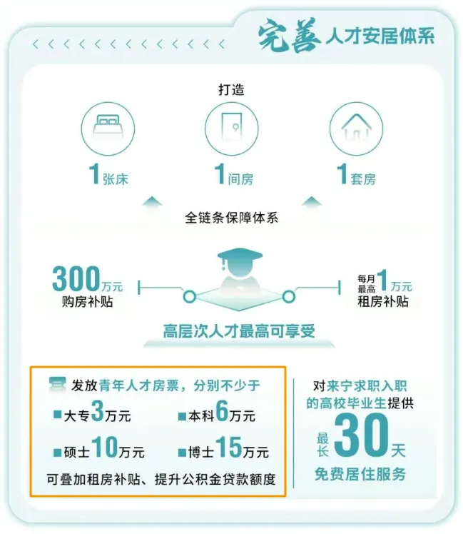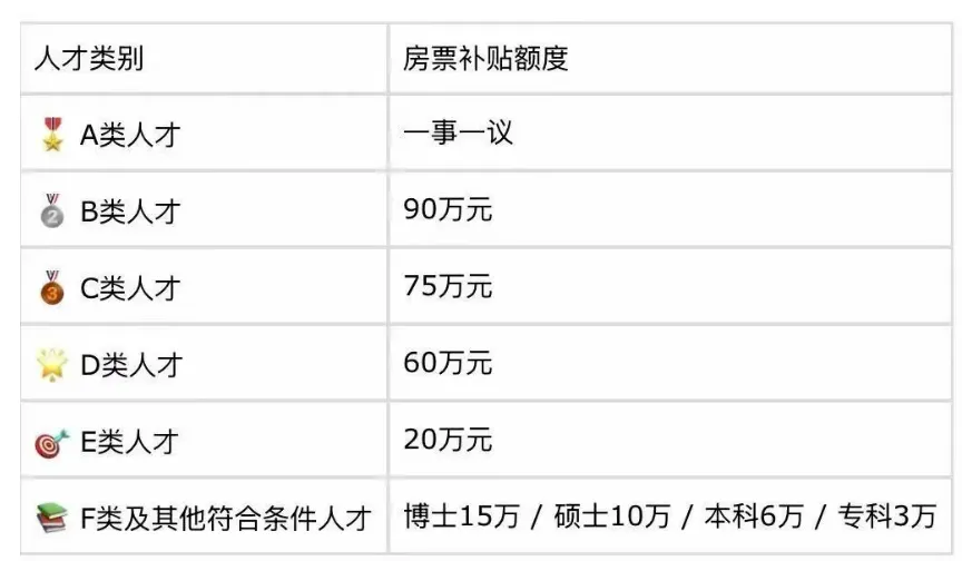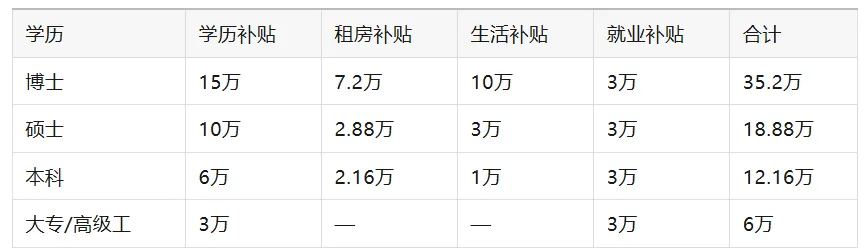 学历补助:博士15万、硕士10万、本科6万、大专/技工3万。