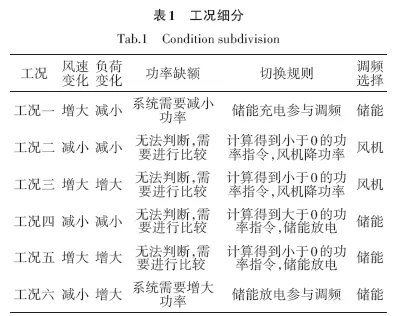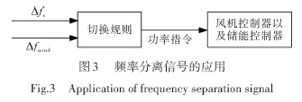 为应对风速和负荷的随机波动,系统通过频率分离方法区分由风速与负荷波动引起的频率偏差,并据此生成不同的功率指令信号(图3)分别分配给风机控制器和储能控制器,实现精准调频。