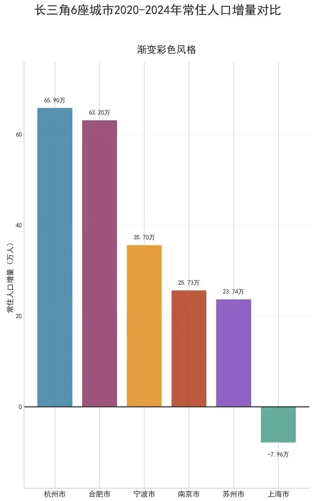 1、杭州市,2020年末-2024年末,常住人口一共增加了65.9万人。