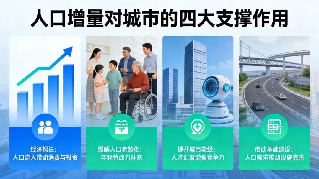 4. 带动基建与产业配套完善:人口适度增长能推动城市基建(交通、医疗、教育)和产业配套的落地,形成“人口集聚—产业升级—资源完善”的良性循环。