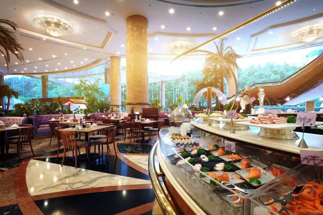 酒店大堂的一侧是咖啡厅,另一侧是豪华的自助餐厅。