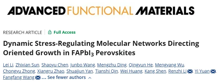 Lei Li et.al Dynamic Stress-Regulating Molecular Networks Directing Oriented Growth in FAPbI3 Perovskites Adv. Functional Mater. 2026