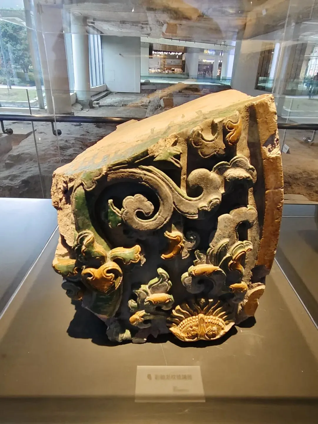 明朝重建了一座琉璃构件,榫卯结构的塔,叫大报恩寺。这是当年琉璃塔的构件,厚重坚实而雕刻繁密。据说非常难以烧造,用了19年才建成一座无与伦比的塔