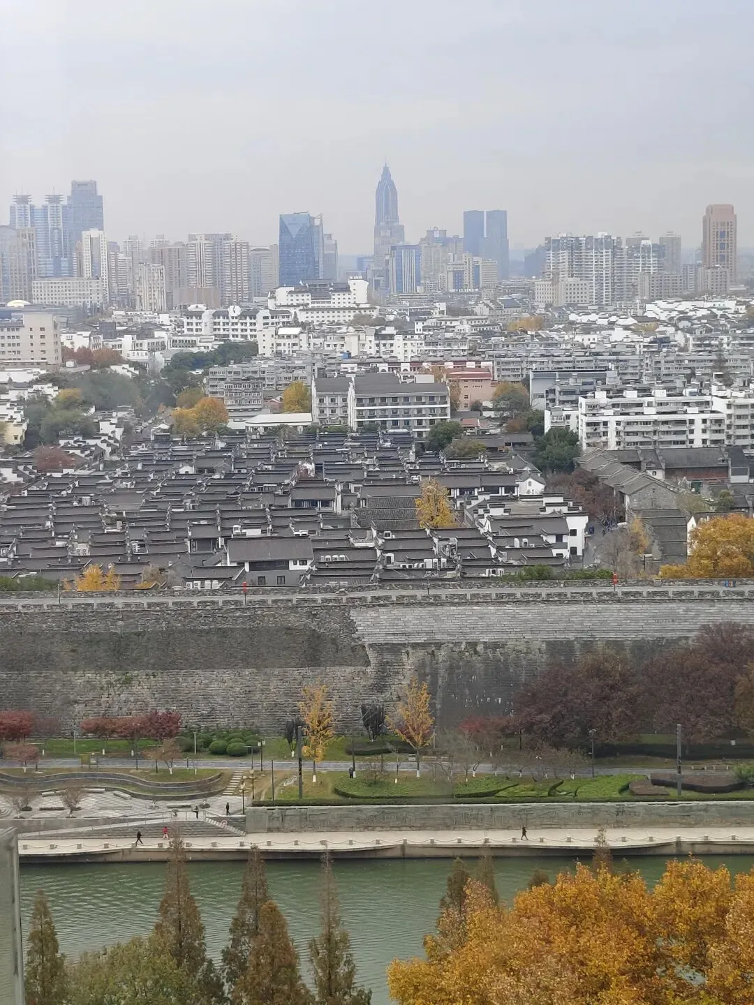 可惜太平天国时,那座琉璃塔被损毁了。现在看到的是2012年重建的玻璃塔。从2楼乘电梯到塔的8楼,向外眺望,可以看到护城河,城墙,城内鳞次栉比的建筑,远近高低各不同的景象。
