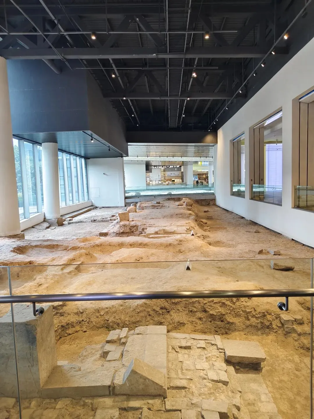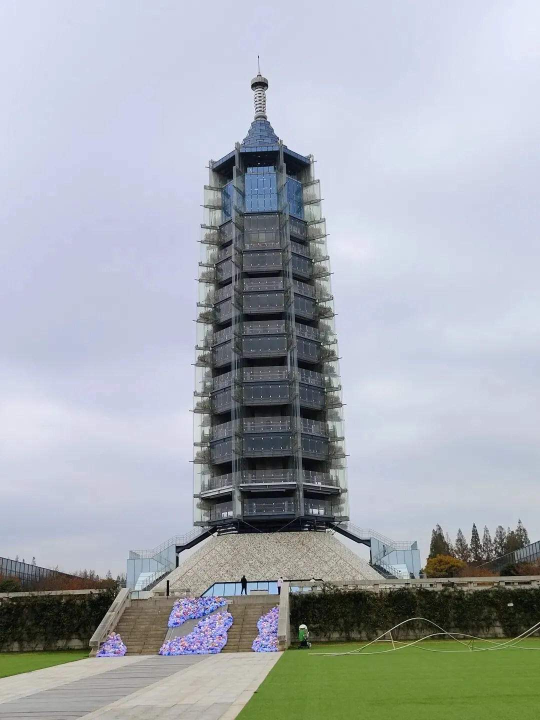 现在的玻璃塔建在旧塔的遗址上,塔座象个大罩子,里面是遗址。