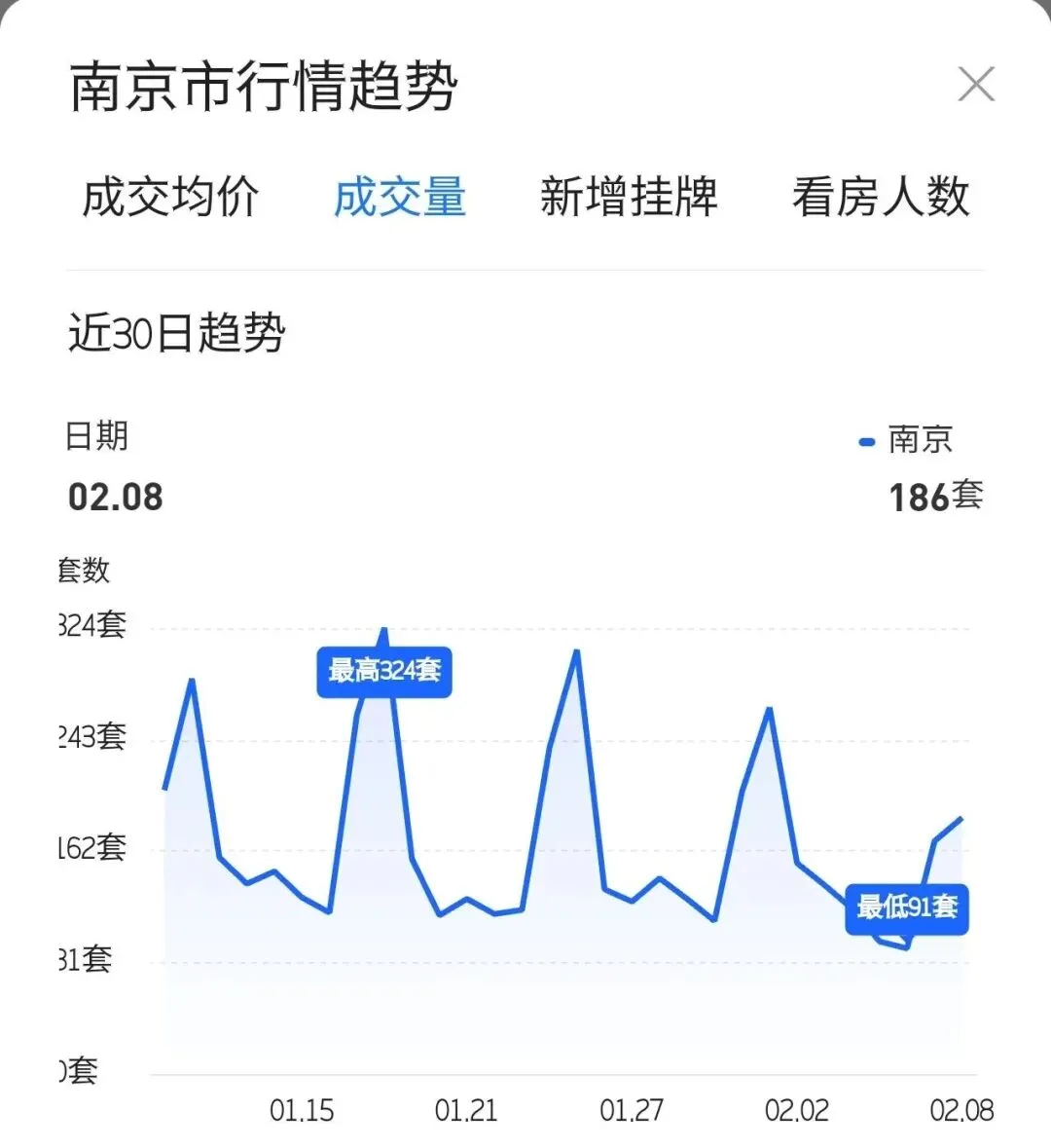 贝壳最新数据:2月8号,南京二手房成交186套。