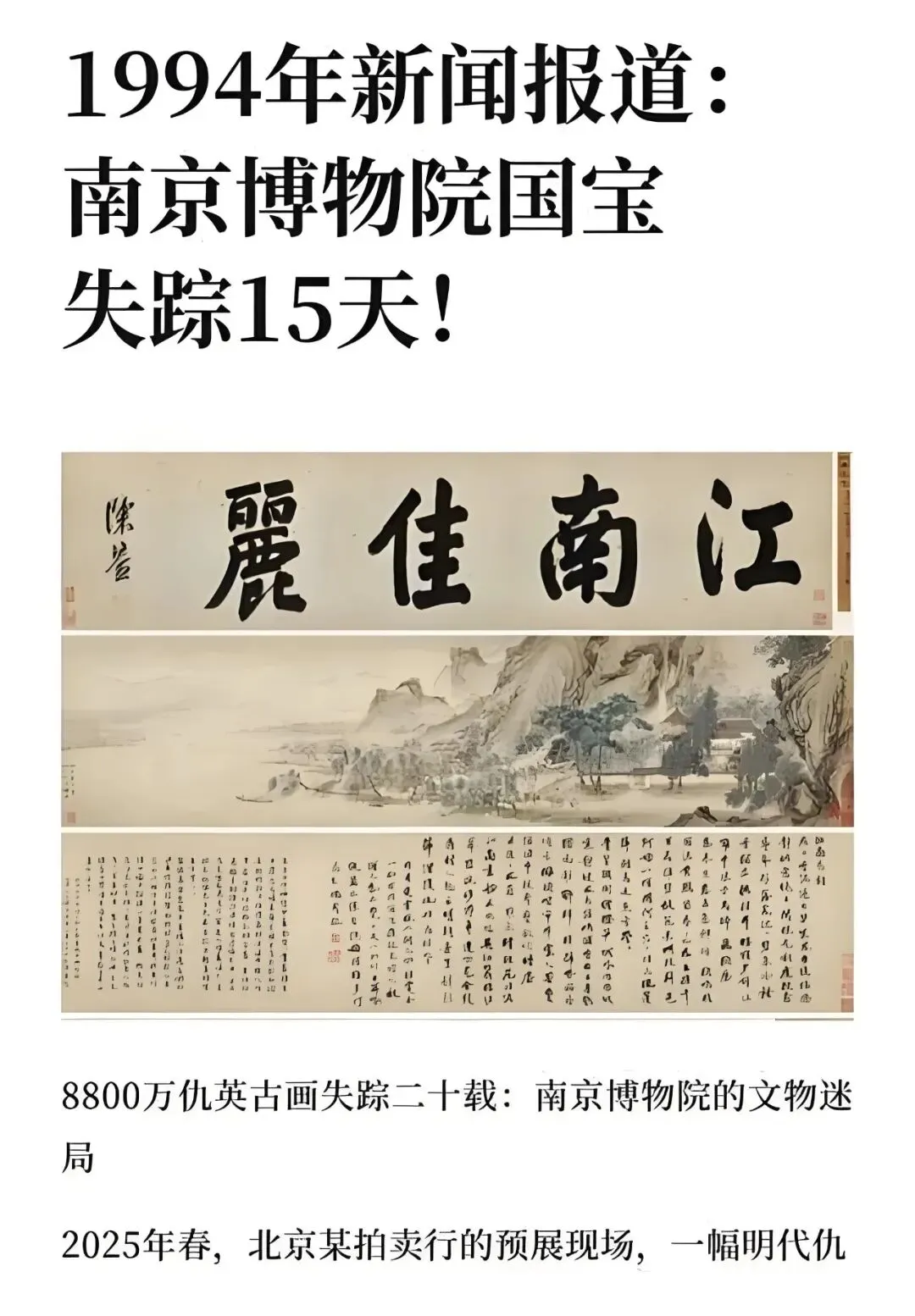 江苏通报南京博物院惊心:《江南春》二十余年流落记与文博界的警钟长鸣