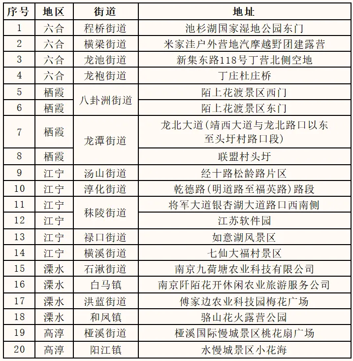 栖霞、江宁、六合、溧水、高淳区部分区域,具体如下: