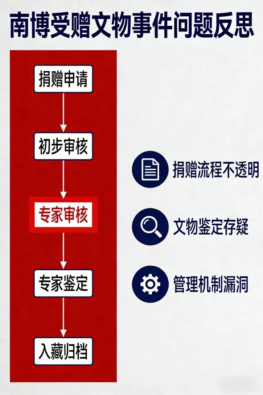 - 制度执行与程序严重违规:受赠文物管理缺失,未履行鉴定、复核、审议程序;违规调拨、批复,擅自出售馆藏文物;未按规定告知捐赠人,违背文物退出管理伦理。