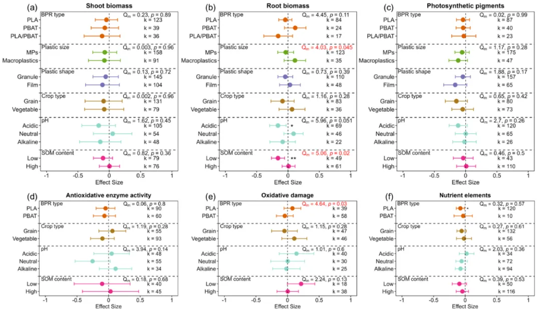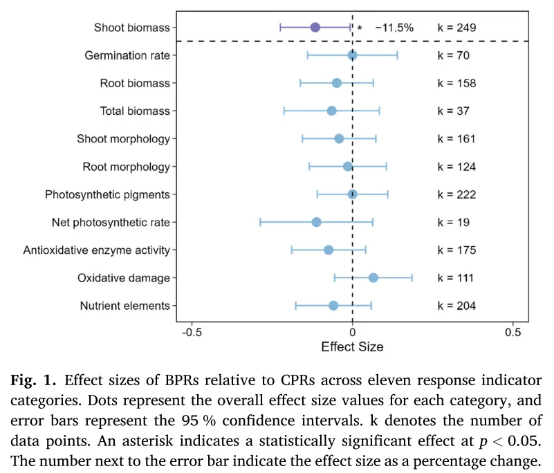 研究的创新性:首次采用严格配对比较的元分析方法,直接对比BPRs与CPRs对作物的影响;系统探究塑料特性、土壤条件等调节因素,为风险评估提供定量依据。