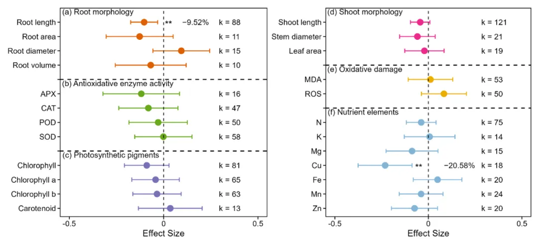 BPRs较CPRs显著降低地上生物量(11.5%)、根长(9.52%)和铜含量(20.58%),增加根系氧化损伤(19.72%);