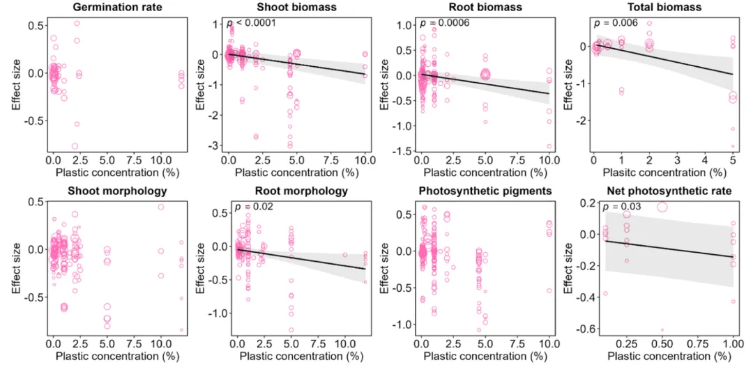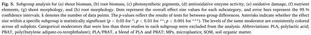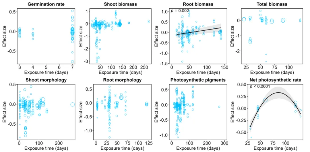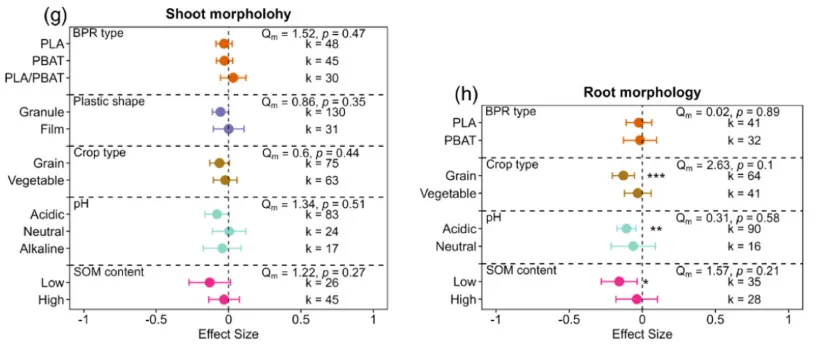 塑料尺寸、形状、类型、作物类型、暴露时间等总体影响有限,但酸性和低有机质土壤中BPRs对根生物量和形态的损害更显著;