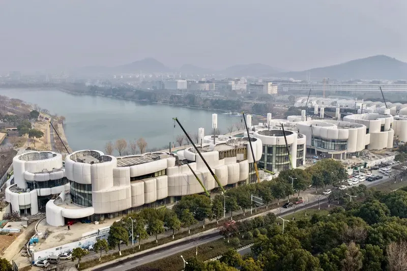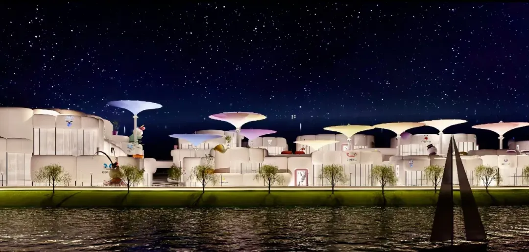 整体建筑外立面采用卡通潮流风格如云朵般排布,视觉冲击力拉满,预计建成后会成为网红打卡点。