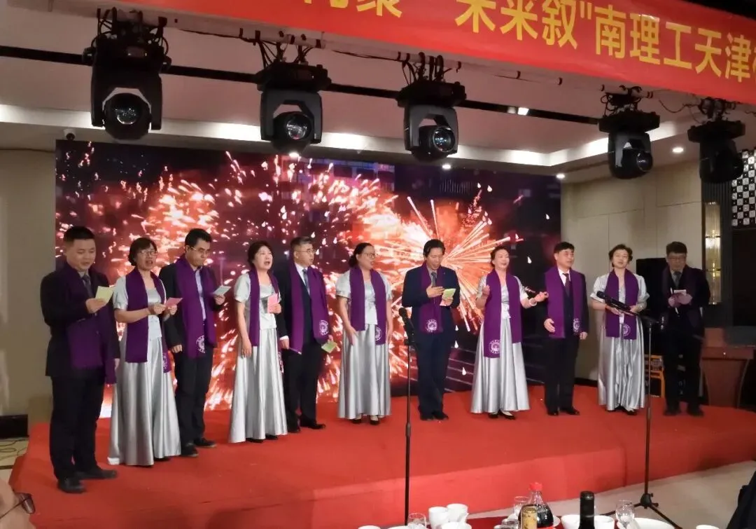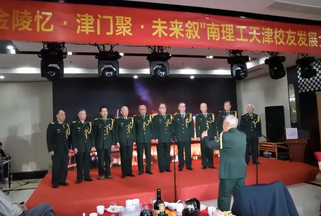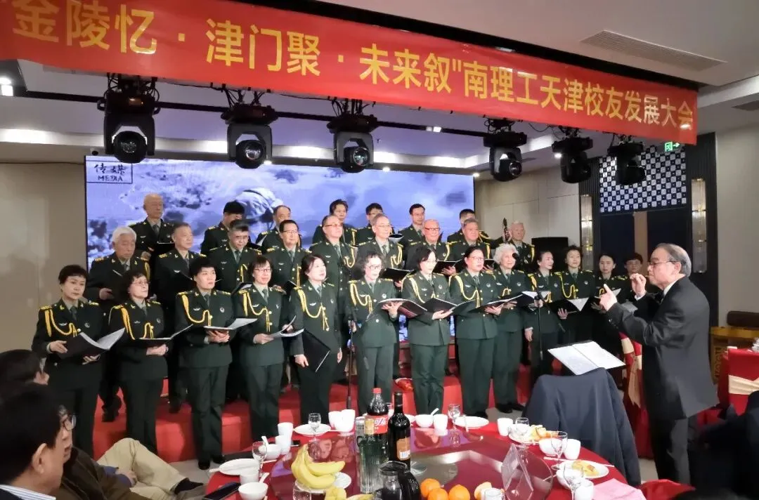 “80后”的64级于航大师兄不到八点就抵达现场帮忙,又感动又心疼尤为值得称道的是,魂系哈军工天津校友合唱团,尤其是老男孩组合,为整场大会增添了浓厚的历史厚重感与军工情怀。在其他合唱团体早已放假的寒冬时节,合唱团全体成员在吴鸿毅团长、焦爱英秘书长的带领下,不顾数九隆冬的严寒,坚持排练、精益求精,用实际行动将哈军工精神具象化,也让这份跨越岁月的校友情、军工情更加深厚绵长。从左到右:指挥阎金达、指挥崔文才、哈军工王孟凯老师金陵忆旧,津门相聚;初心不改,逐梦前行。此次校友发展大会,不仅为在津南理工校友搭建了交流互动、共叙情谊的平台,更传承了军工精神、凝聚了发展合力。未来,南京理工大学天津校友会将继续坚守初心、履职尽责,持续搭建校友与母校、校友与校友、校友与天津之间的沟通桥梁,凝聚广大在津校友的智慧与力量,助力母校高质量发展,为天津经济社会建设贡献南理工力量,让校友情谊在岁月中沉淀升华,让军工精神在传承中熠熠生辉。