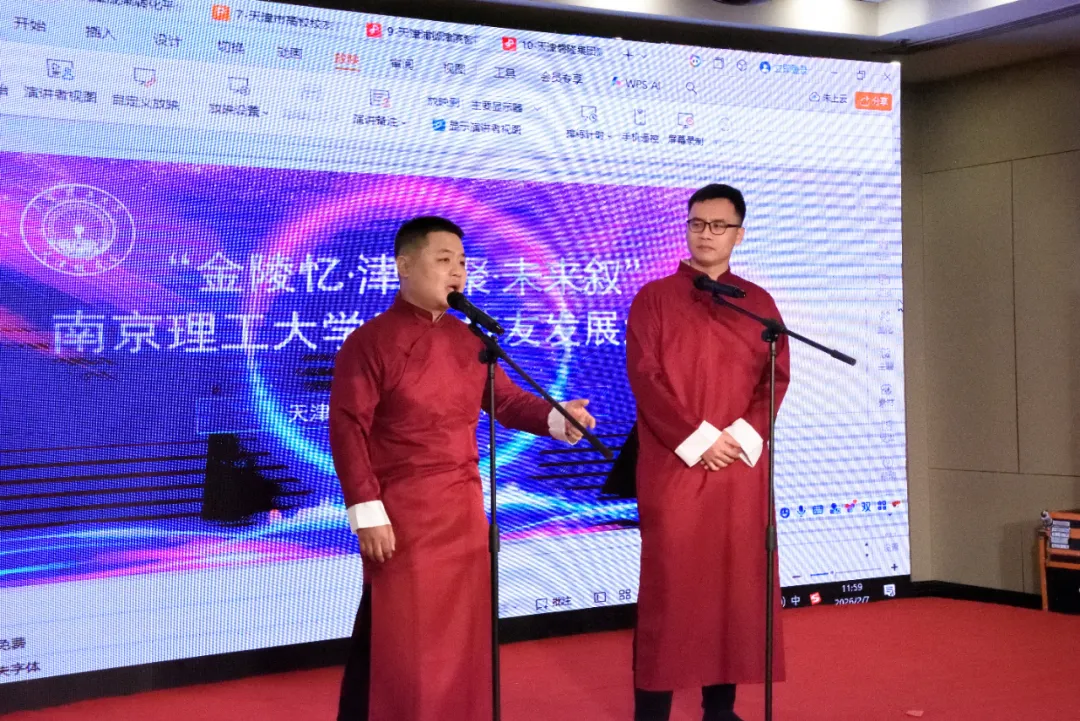 04级校友张黎寅、07级校友刘宇作为南理工话剧团昔日优秀团员,带来对口相声《高一点》,幽默诙谐的台词、生动形象的演绎,让现场笑声不断、氛围热烈,展现了南理工人多才多艺的一面。