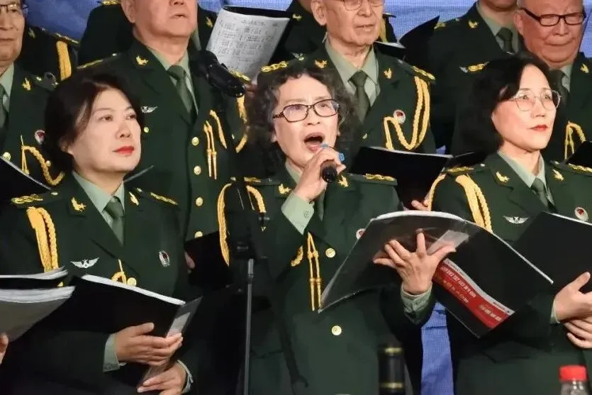 合唱团招牌组合——老男孩组合登场后,现场氛围再掀高潮。这支由79岁以上哈军工前辈组成的队伍,由86岁高龄的哈军工崔文才老师担任指挥,他们带来的《海港之夜》旋律悠扬、情感醇厚,前辈们精神矍铄、风采依旧,用歌声诉说着岁月情怀与军工担当,让在场校友深受触动。