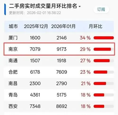 2026年开年,南京二手房均价首次出现环比持续上涨,月度涨幅达4.3%,成为继香港之后第二个明确走出阴霾的城市。