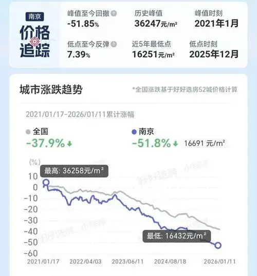 自2021年高点以来,南京房价累计回调幅度达51.8%,显著超出全国均值(37.9%)。市场的“过度悲观”使得部分优质资产被低估,尤其是主城区优质学区房、地铁上盖物业等具备真实居住与资产双重属性的资产开始显现估值修复动力。