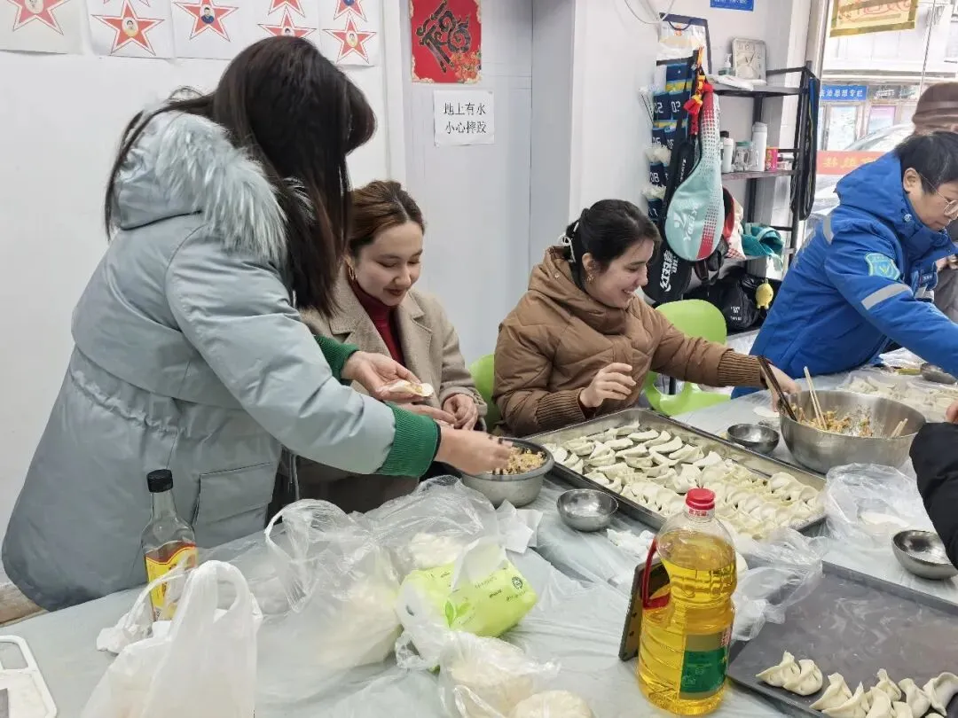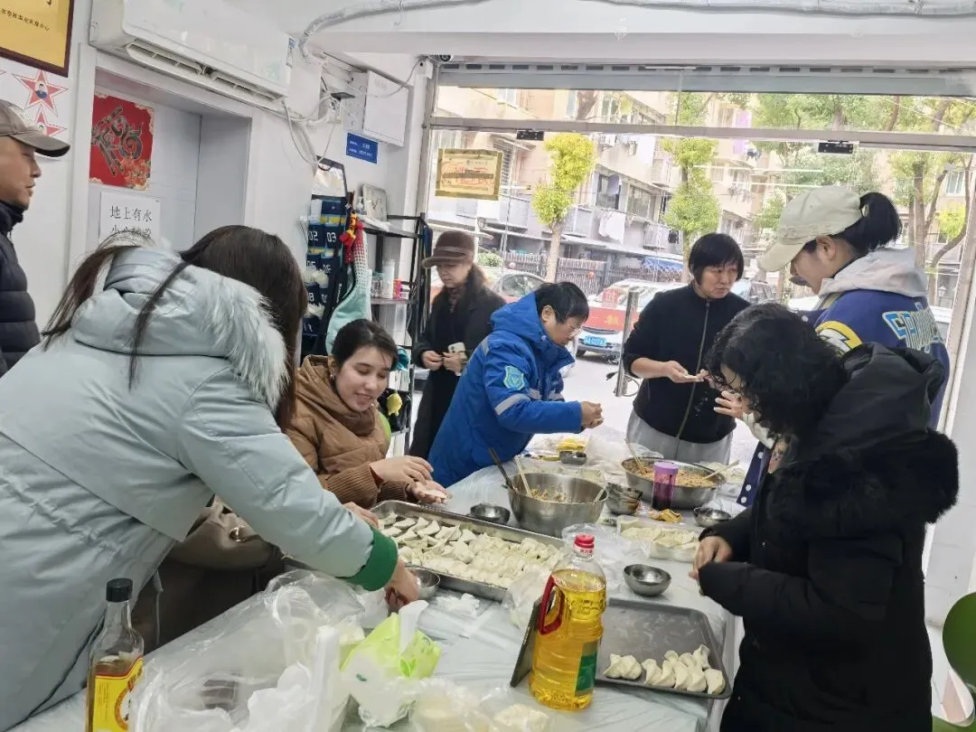 另一边,志愿者们围坐在一起调馅、包饺子,手法娴熟、笑语不断,空气中弥漫着浓浓的年味与家的温暖。