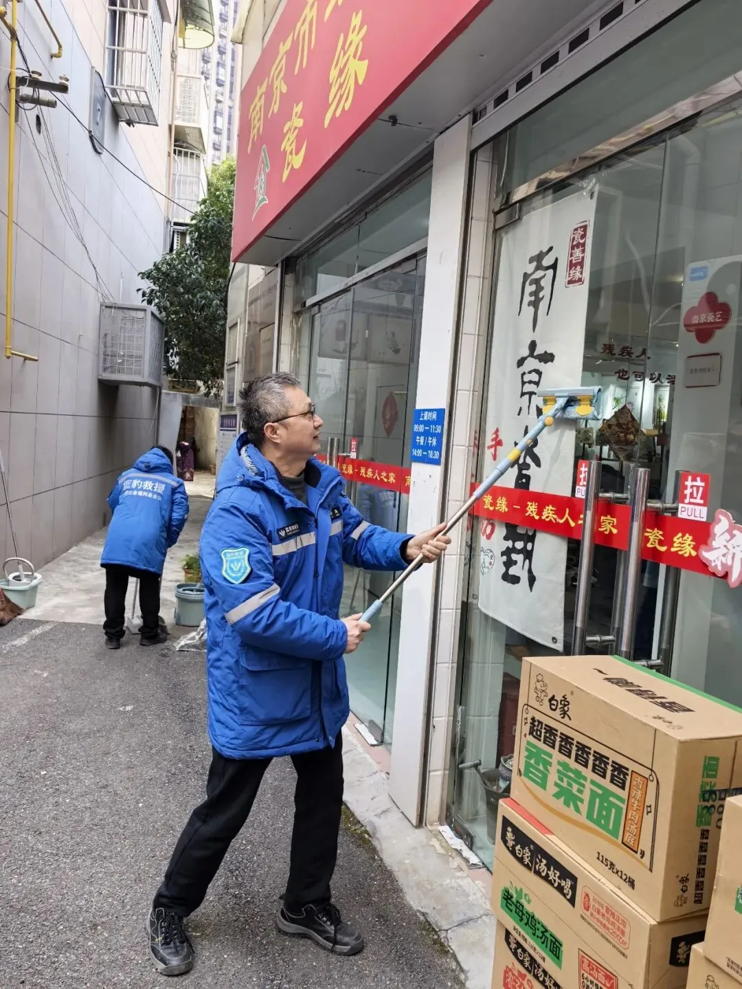 活动现场暖意融融,志愿者们分工协作、干劲十足。大家拿起工具认真开展新年大扫除,清扫整理、擦窗除尘,把机构里里外外打扫得干净整洁,营造出温馨喜庆的节日氛围。