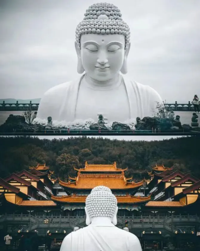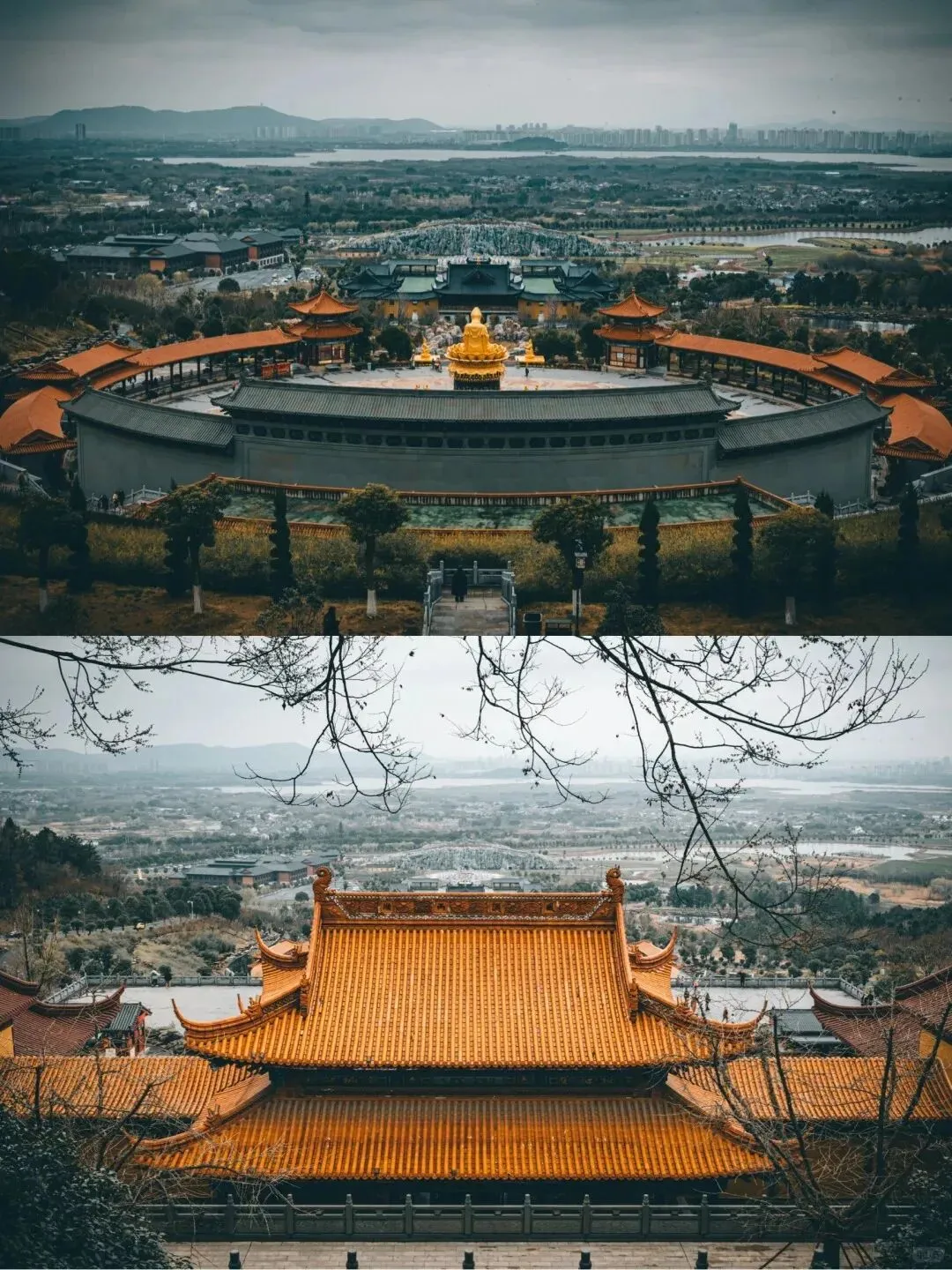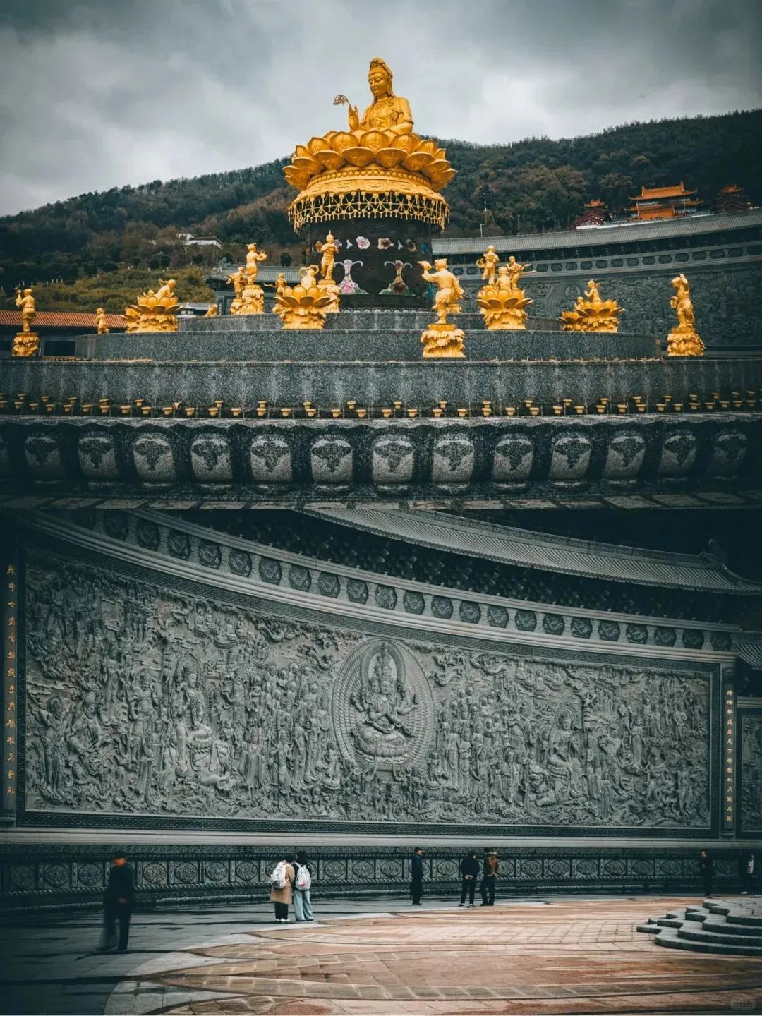 东庐观音寺,便背倚东庐,面朝中山湖,静谧庄严。寺内有一尊宏伟的半山露天大佛,慈目垂视众生,与湖光山色相映成趣。