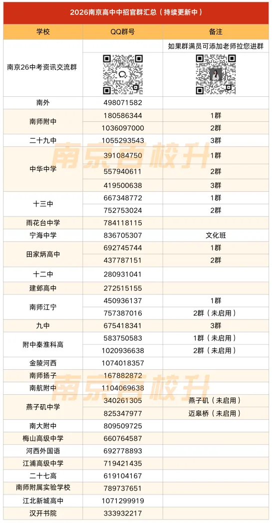 另外近期南京不少高中开放26中考招生群啦,看看最新版汇总!