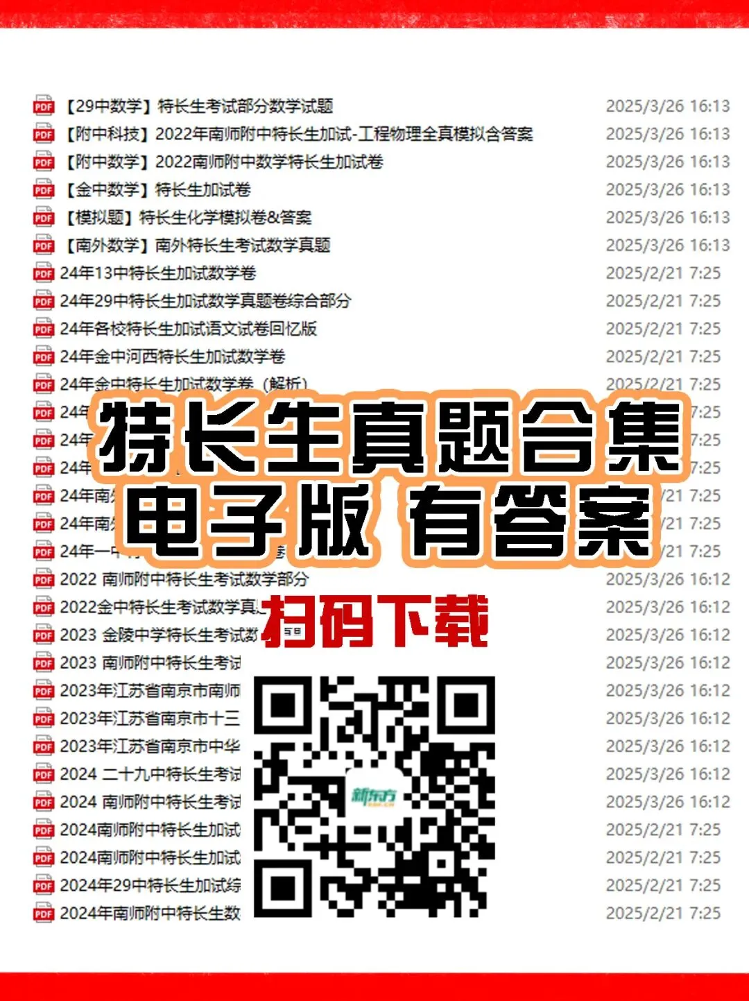 可以扫码下载特长生真题