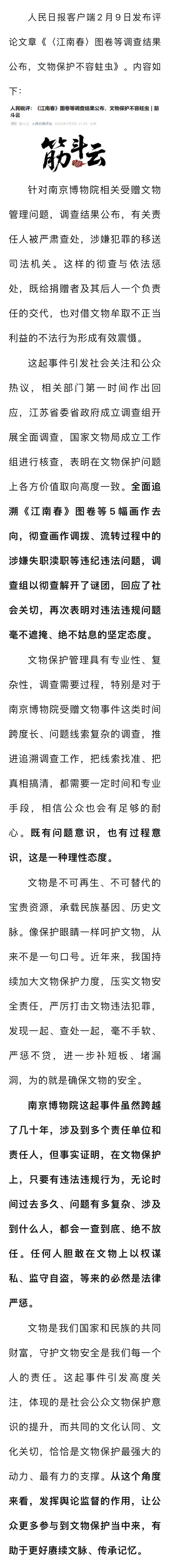 人民日报评南京博物院事件:一查到底、绝不放任