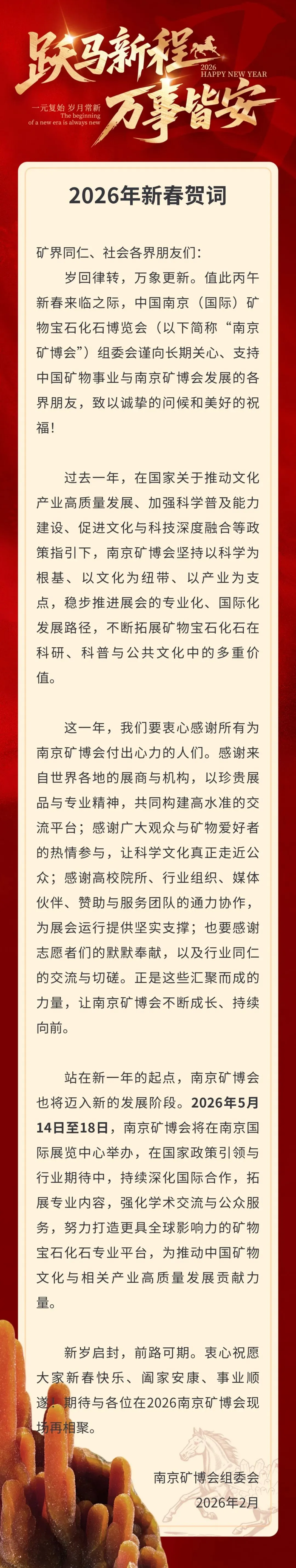 >岁启丙午,晶彩同行!南京矿博会新春贺词