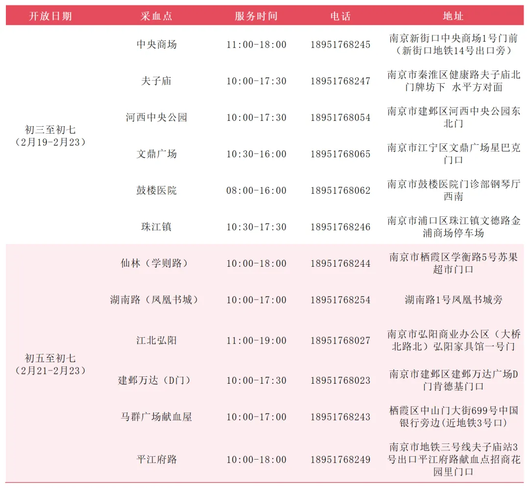 公告丨南京红十字血液中心2026年春节街头献血点工作安排