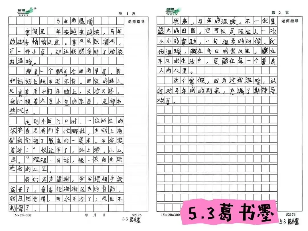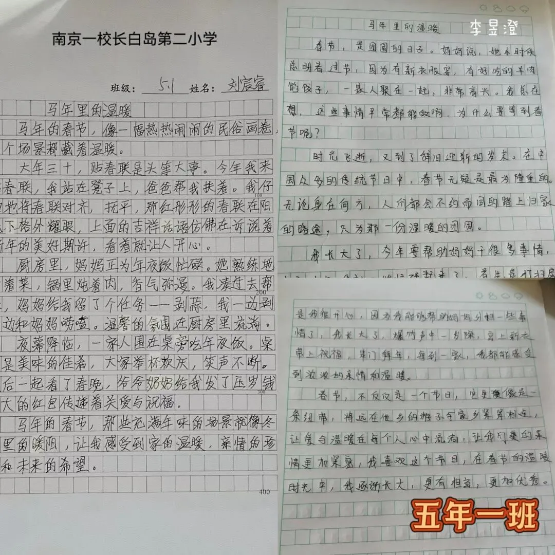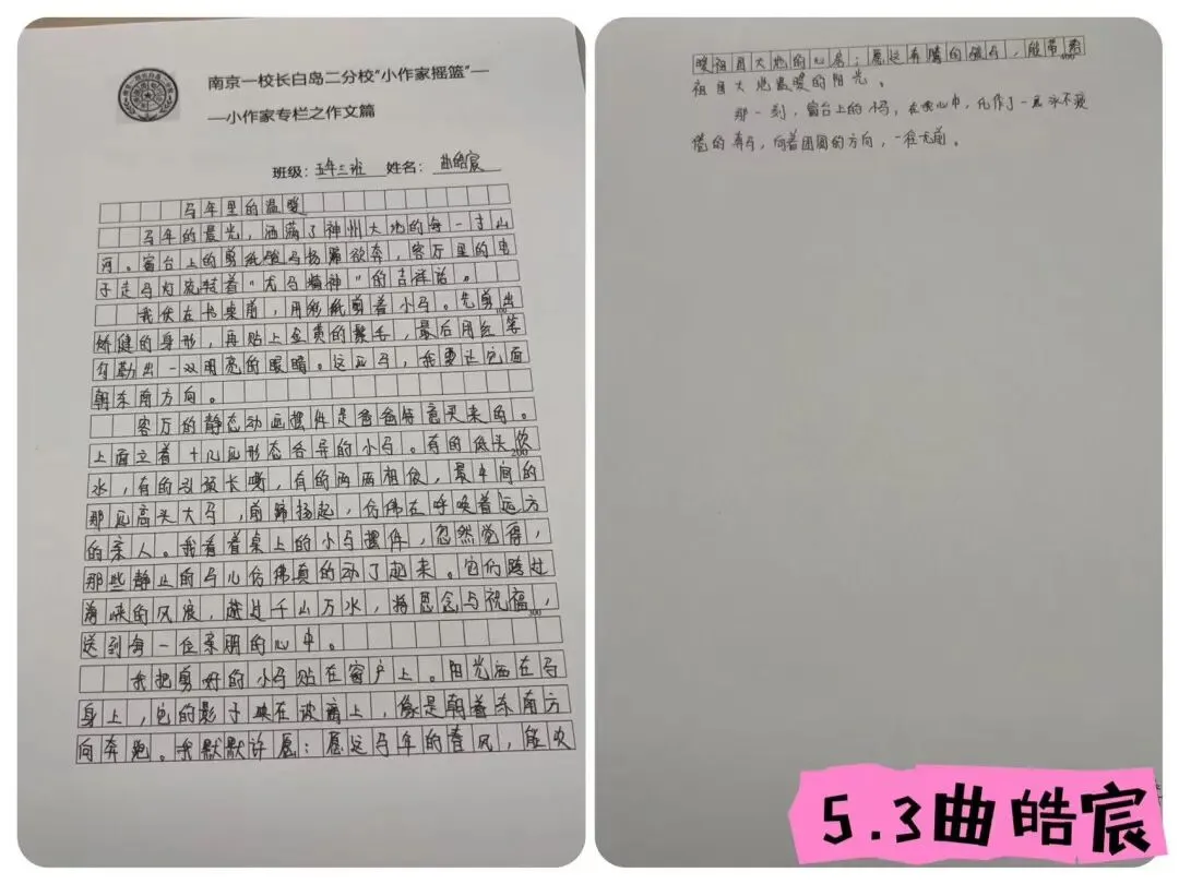 【南京一校长白岛第二小学】童心绘年味 笔墨书温暖——小作家摇篮假期活动(五年组)