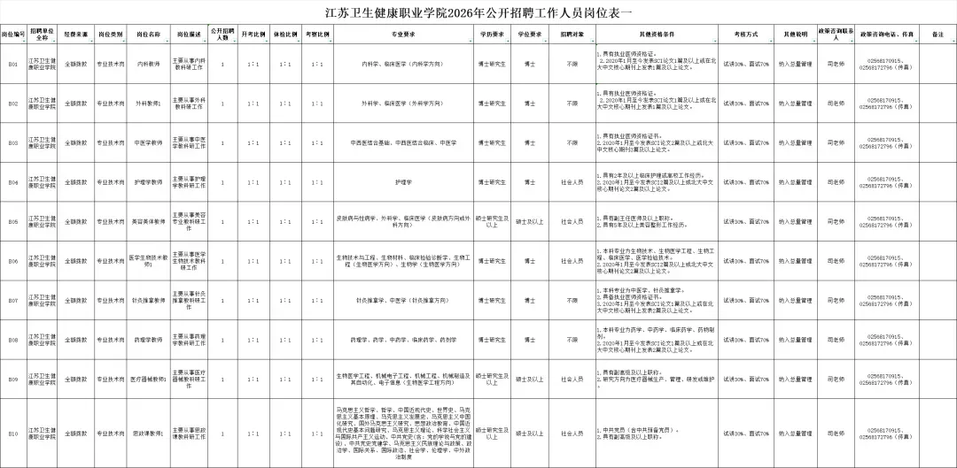 附件1:江苏卫生健康职业学院2026年公开招聘工作人员岗位表一.xls