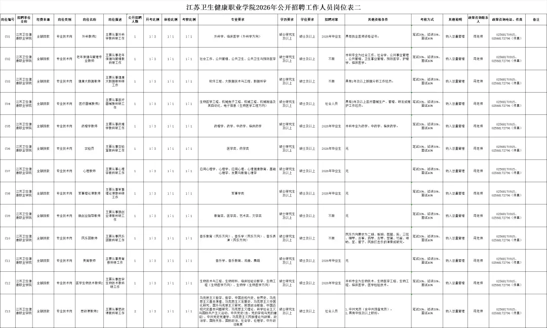 附件2:江苏卫生健康职业学院2026年公开招聘工作人员岗位表二.xls