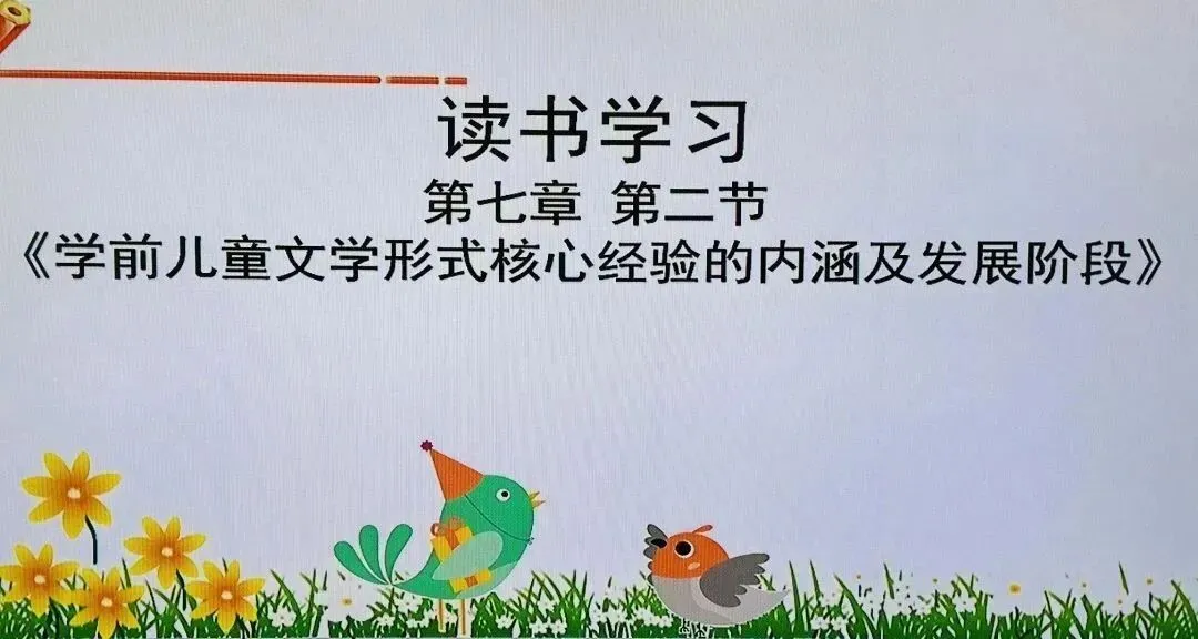 阅读专业书籍是开启教师专业化的钥匙。在本次语言组的学习分享活动中,老师们共同阅读了《学前儿童语言学习与发展核心经验的内涵及发展阶段》中节选的“故事形态特征的经验”段落部分。阅读后老师们畅谈对本章内容的阅读体会,在交流困惑、畅所欲言的轻松氛围下进行思想碰撞。