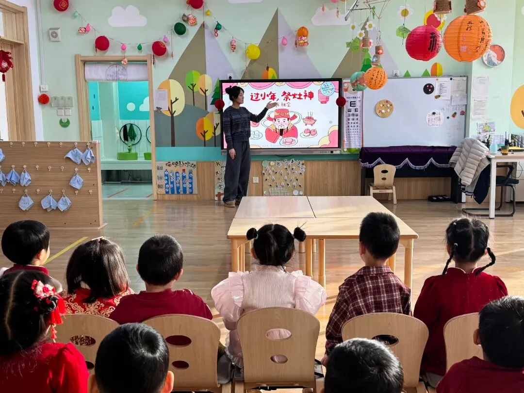 老师给宝贝们讲述了小年“祭灶”“扫尘”的由来,一个个小脑袋听得津津有味,眼神里充满了对传统文化的好奇。