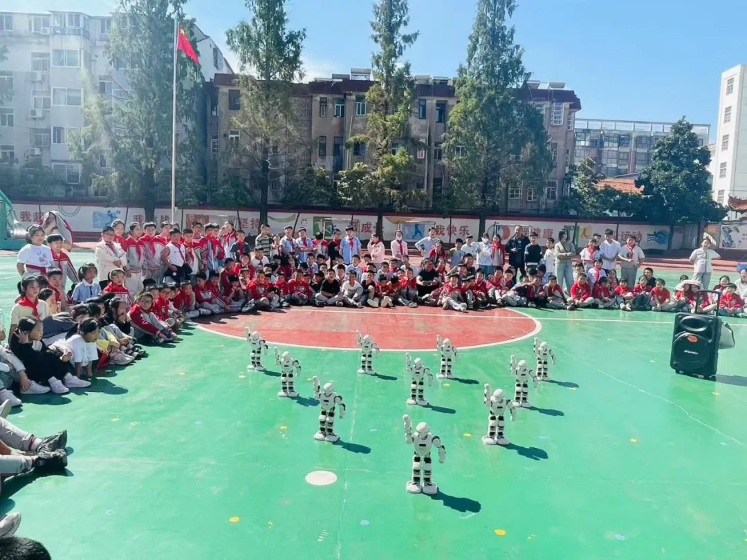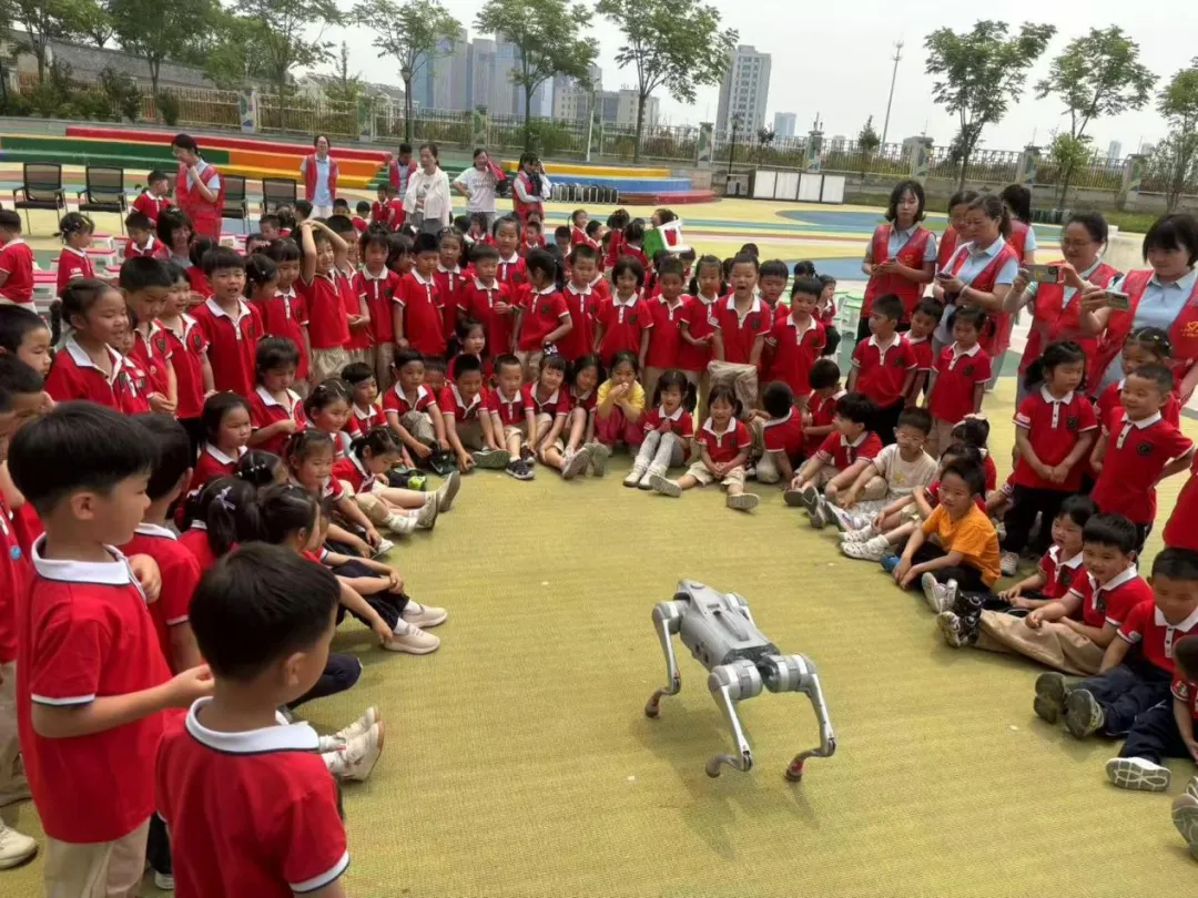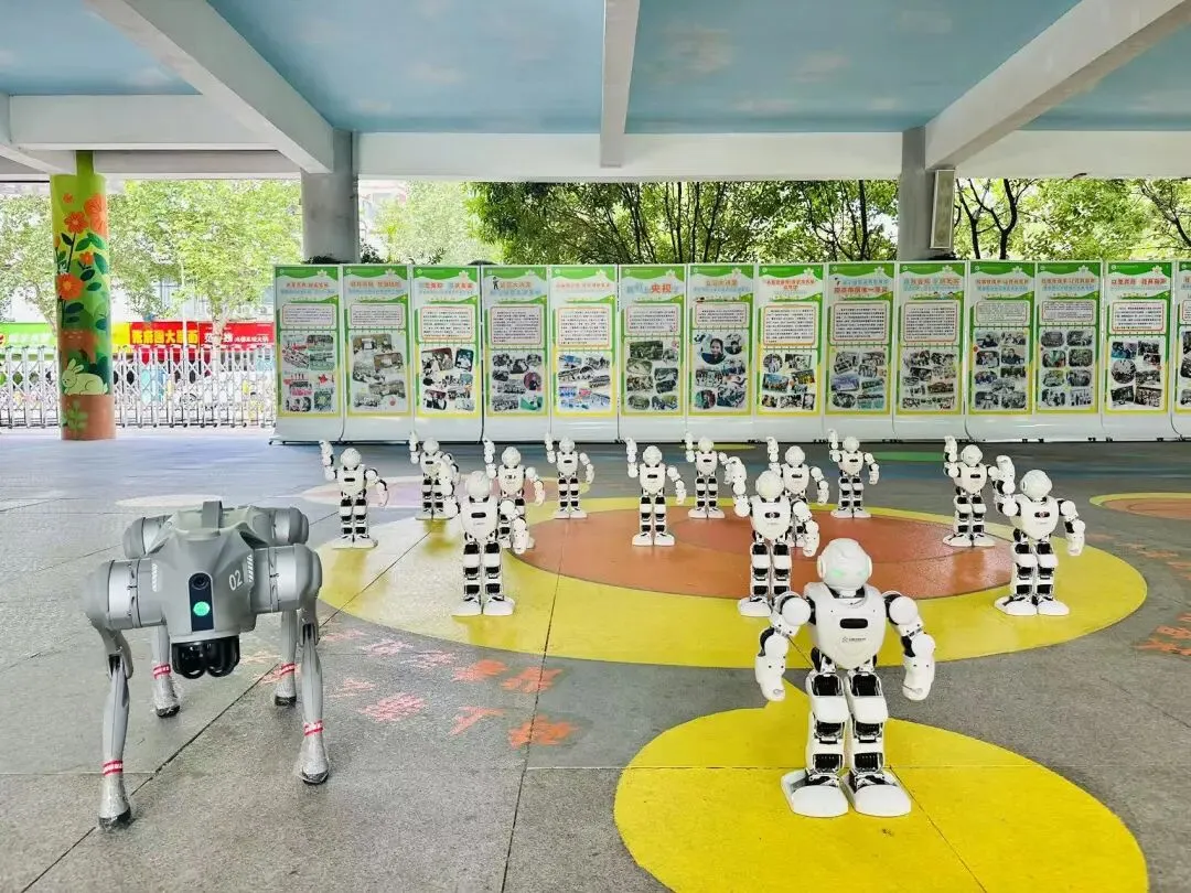 人工智能表演:如今智能机器人早已被广泛应用于各个领域,我们带领学生近距离观察,人工智能的表演和机器狗互动