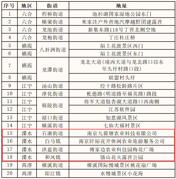 栖霞、江宁、六合、溧水、高淳区部分区域,具体如下: