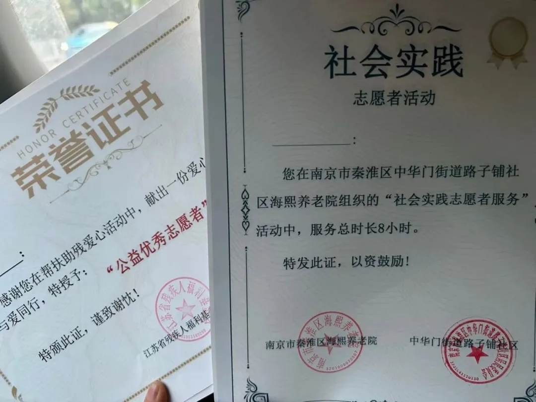 累计我的南京8小时志愿服务时长➕证书盖章单位(养老院➕省级基金会)